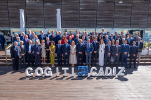 El acto congregó a una destacada representación institucional, empresarial y académica, entre los que se encontraban el teniente de alcalde del Ayuntamiento de Cádiz, José Manuel Cossi; la delegada territorial de Economía, Hacienda, Fondos Europeos y Política Industrial y Energía en la provincia, Inmaculada Olivero; el presidente de CACITI, José Zayas; decanos de otros colegios provinciales, así como representantes del ámbito universitario, municipal y colegial.