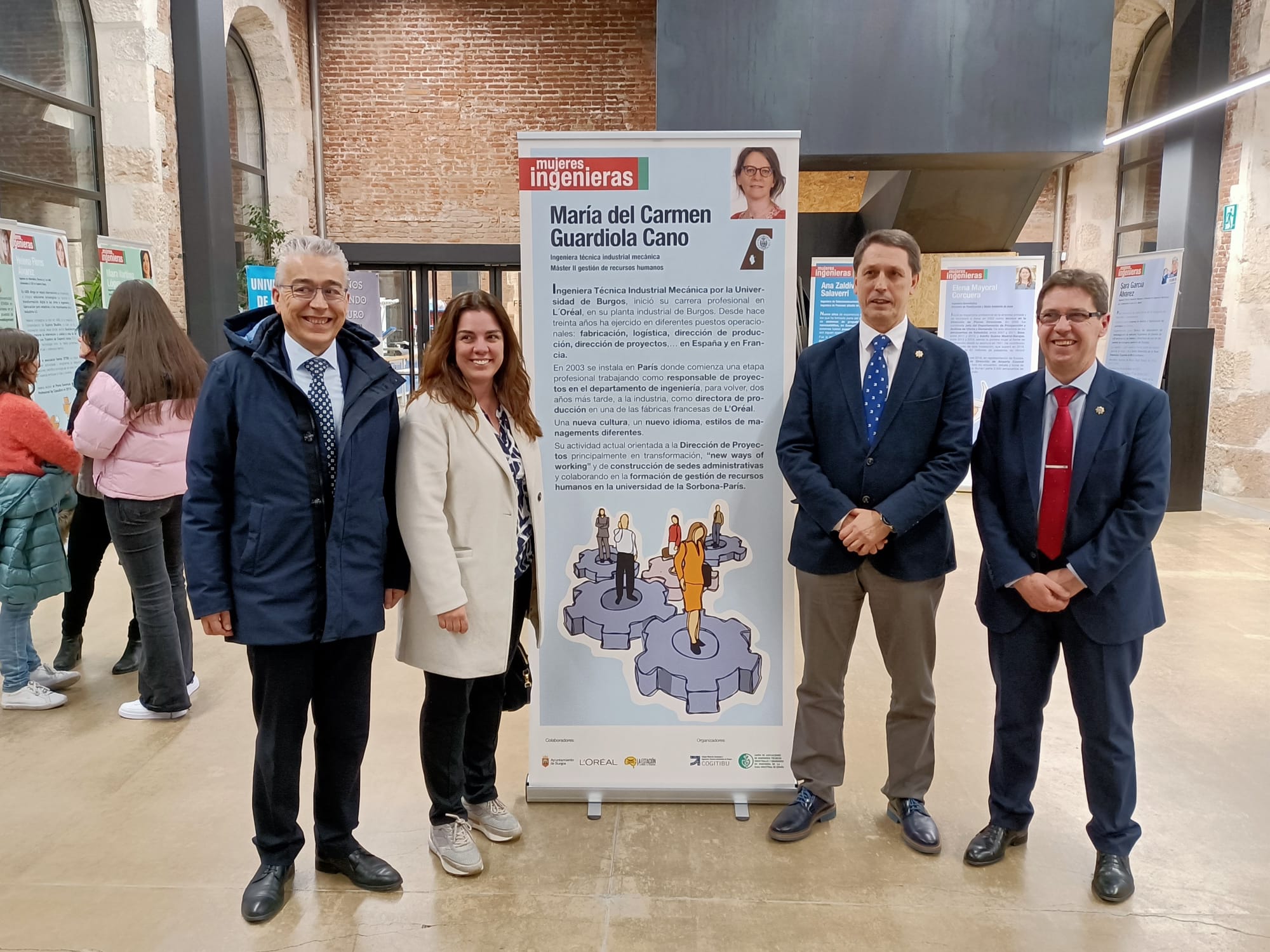 Durante la exposición se pudo conectar por videollamada con María del Carmen Guardiola Cano, Ingeniera Técnica Industrial Mecánica, con Master II en gestión de recursos humanos de LOREAL (actualmente trabajando en Paris), y que cursó sus estudios en la Universidad de Burgos. La nueva panelista de éxito fue la representante elegida por las instituciones burgalesas, para seguir aumentando el magnífico elenco de ingenieras de la Muestra. El acto contó también con sus familiares y la directora de L’Oreal, Inés Fernández Gil.